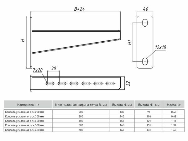 Консоль усиленная осн.200 мм HDZ (2,5 мм)