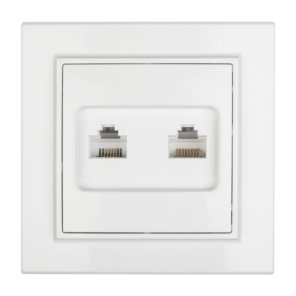Розетка двойная RJ45+RJ11 СП белая Минск EKF Basic