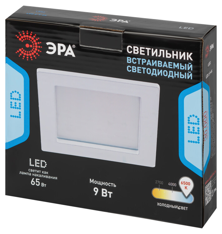 LED 2-9-6K /1 Светильник ЭРА светодиодный квадратный LED 9W 220V 6500K (30/630)