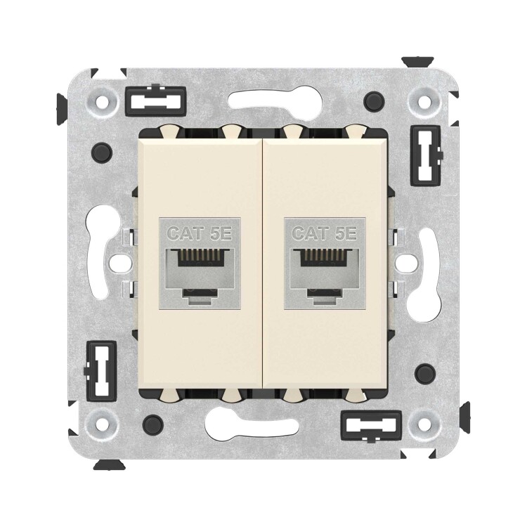 Компьютерная розетка RJ-45 без шторки в стену, кат.5e двойная экранированная, "Avanti", "Ванильная дымка"