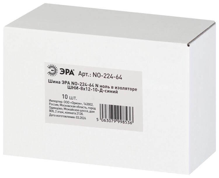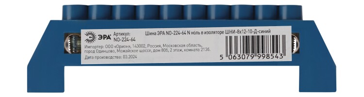 Шина ЭРА NO-224-64 N ноль в изоляторе ШНИ-8х12-10-Д-синий