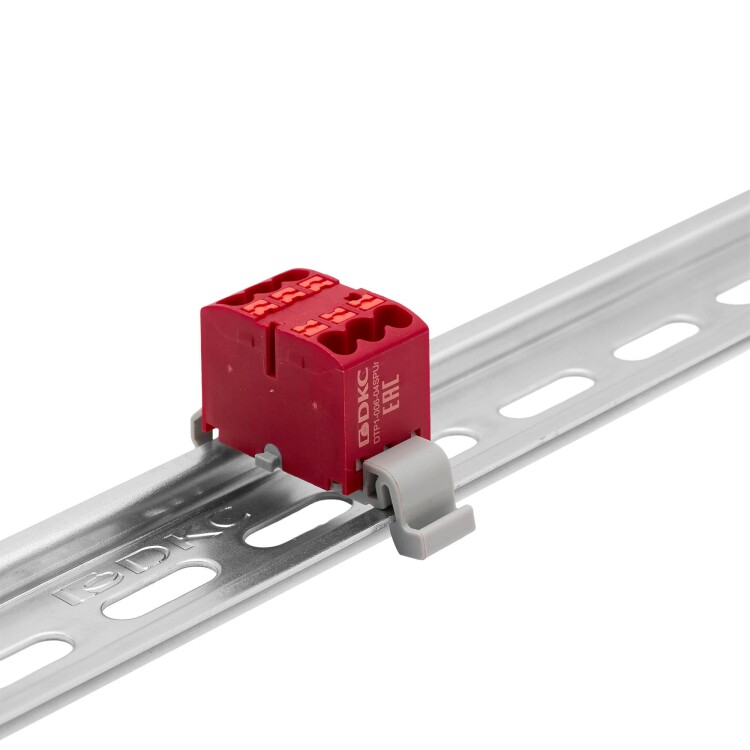 Блок распределительный, зажим push-in, 6 точек подключения 2,5 кв.мм, красный