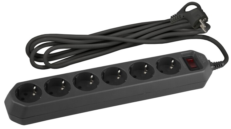Сетевой фильтр ЭРА USF-6es-1,5m-B с базовой защитой с заземлением с выключателем 6 розеток 1,5м 10А черный