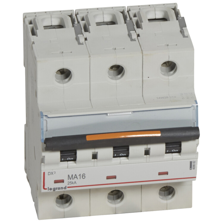 Автомат. выкл. 3-пол. 16А тип MA 25кА серия DX? MA - 25 кА - тип характеристики MA - 3П - 400 В~ - 16 А - 4,5 модуля