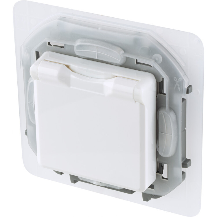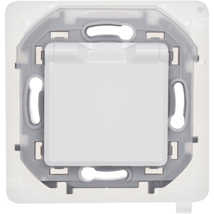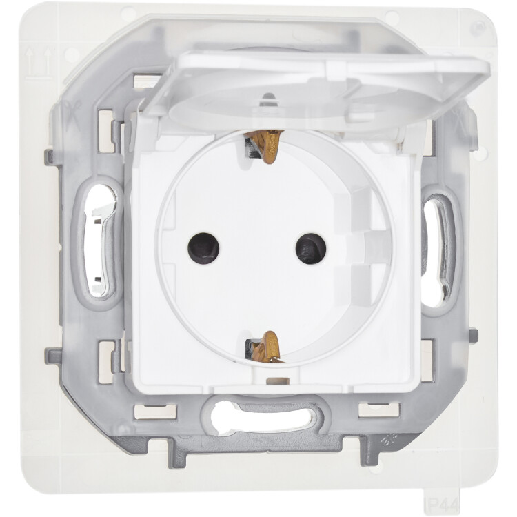 Розетка 2P+E с крышкой со шторками IP44 16А 250В белый INSPIRIA
