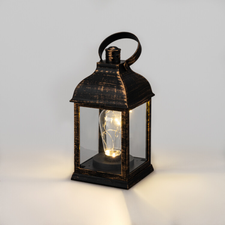 Декоративный фонарь с лампочкой, бронзовый корпус, размер 10,5x10,5x22,5 см, цвет ТЕПЛЫЙ БЕЛЫЙ