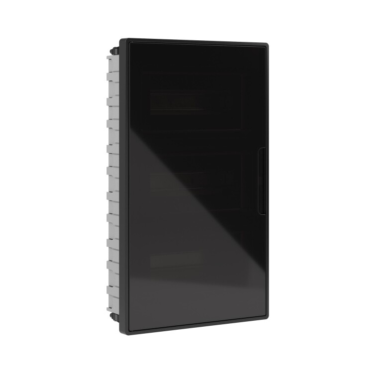Щиток 36 мод встраиваемый для полых стен FRAME, черный, с тонированной дверцей, с 4 шинами PEN (2шт на 8 отв. и 2шт на 10 отв.)