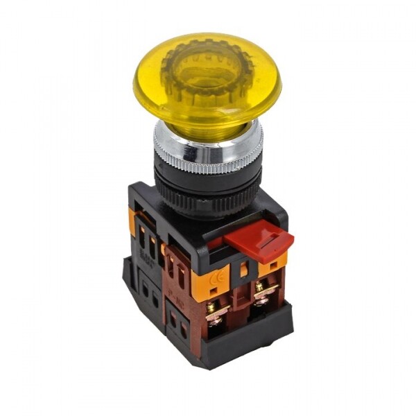 Кнопка AELA-22 желтая с подсветкой NO+NC 220В Грибок EKF PROxima