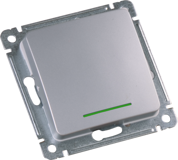 ВС10-412-06 Выключатель скрытой установки, одноклавишный, с индикацией, механизм, цвет серебро