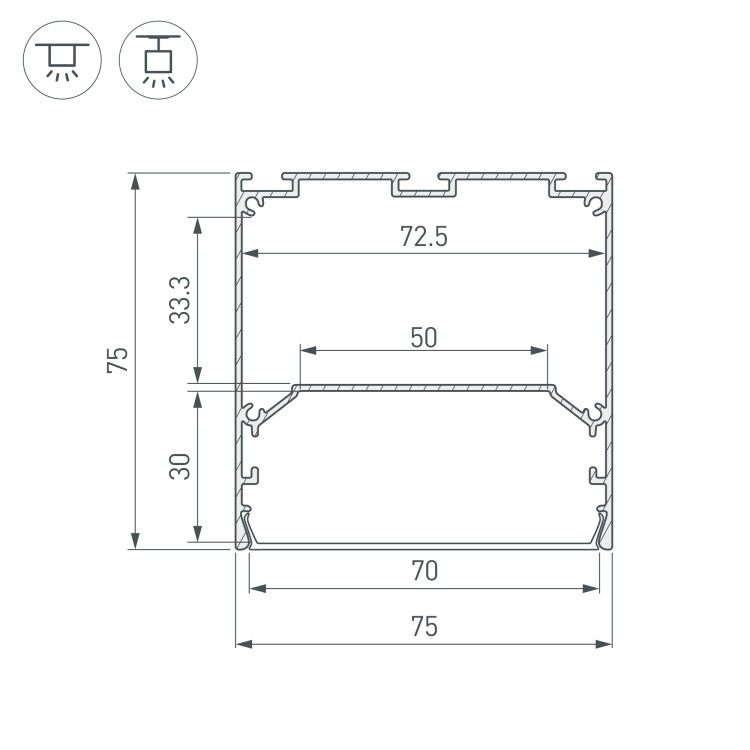 Профиль LINE-S-7575-2000 WHITE (Arlight, Алюминий)
