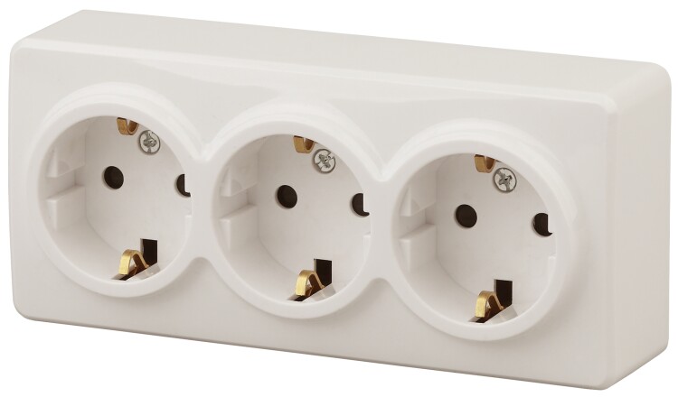 11-2208-02 ЭРА Розетка 3х2P+E Schuko, 16A-250В, IP20, ОУ, Эра Эксперт, сл.кость (6/60/1200)