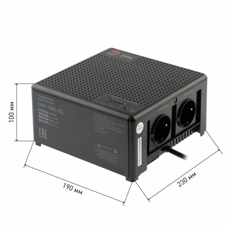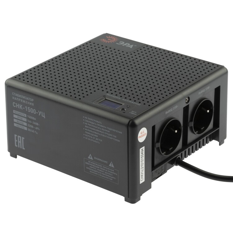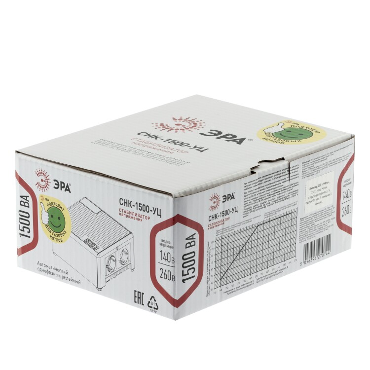 Стабилизатор напряжения ЭРА CНК-1500-УЦ компактный универсальный, 140-260В/220В, 1500ВА