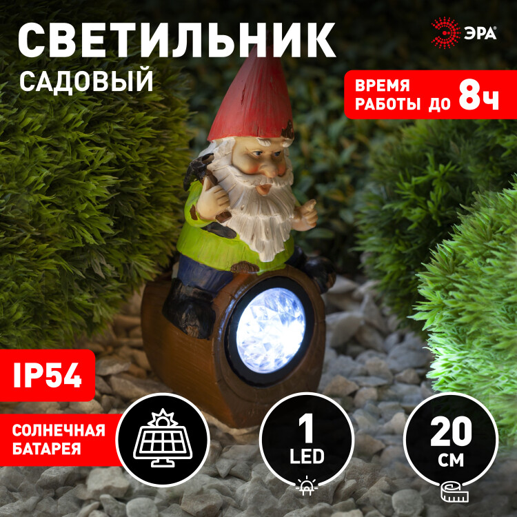 SL-RSN20-GN-3S ЭРА Садовый светильник на солнечной батарее, полистоун, цветной, 20,4 см (12/144)
