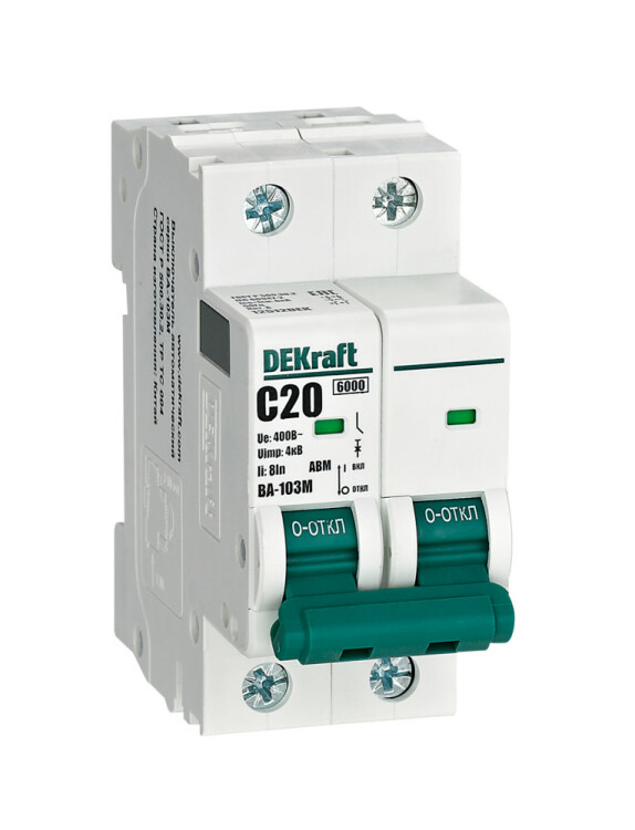 Авт. выкл. без теплозащиты 2P 20А х-ка C 6кА ВА-103M