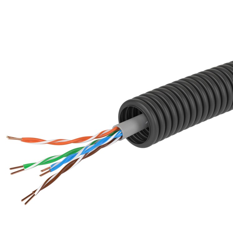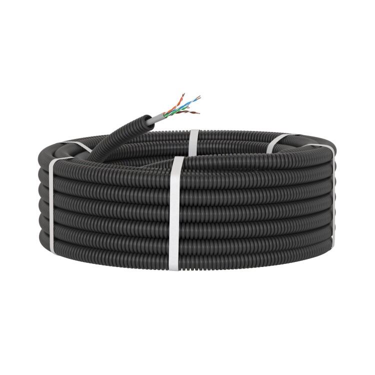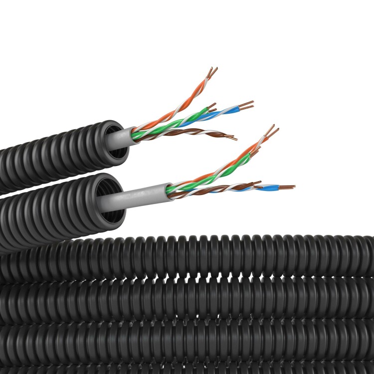 Электротруба ПНД гибкая гофрированная д. 16 мм, цвет черный, с кабелем витая пара 5EU/UTP нг(А)-HF, 25 м