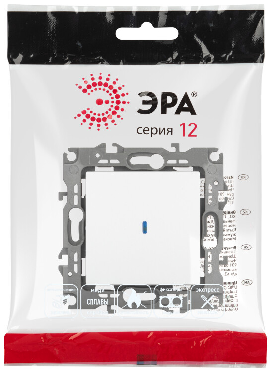 Выключатель ЭРА Серия 12 12-1102-01М с подсветкой, 10АХ-250В, белый матовый
