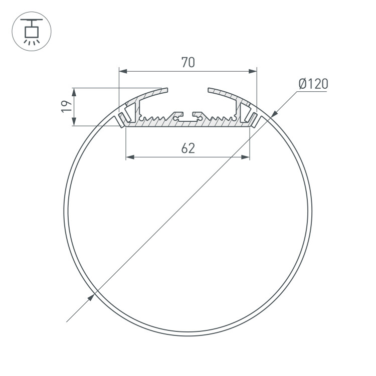 Алюминиевый Профиль подвесной/круглый SL-ROUND-D120-2000 ANOD (2 метра)