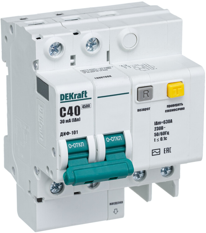 Автомат. выкл. дифф. тока 2-пол. 40А 30мА тип AC 4,5кА хар-ка С ДИФ-101