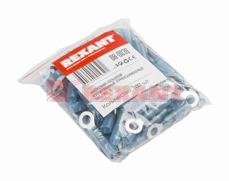 Наконечник кольцевой изолированный термоусаживаемый ø 6.5 мм 1.5-2.5 мм² (НКи-т 2.5-6/НКи-т2-6) синий REXANT