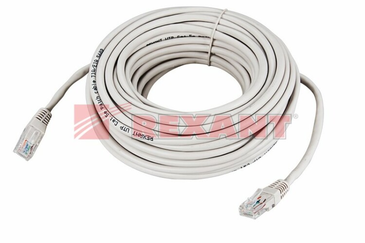 Коммутационный шнур, патч-корд, U/UTP категории 5e, длина 25 метров, неэкранированный, ПВХ, серый