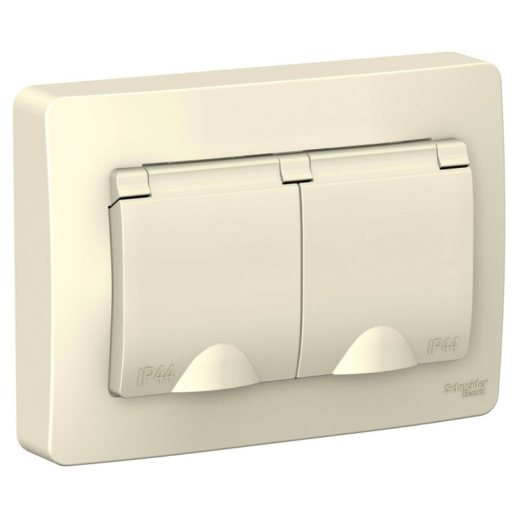 Розетка 2х2P+E со шторками с крышкой 16А 250В IP44 молочный BLANCA