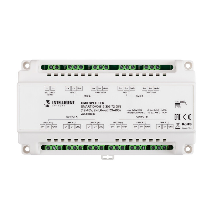 INTELLIGENT ARLIGHT Сплиттер SMART-DMX512-306-72-DIN (12-48V, 2-in, 6-out, RS-485) (IARL, IP20 Металл, 5 лет)