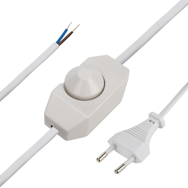 Шнур сетевой, с вилкой, ШВВП 2x0,75мм², IP20, длина 2, ПВХ, белый, с диммером