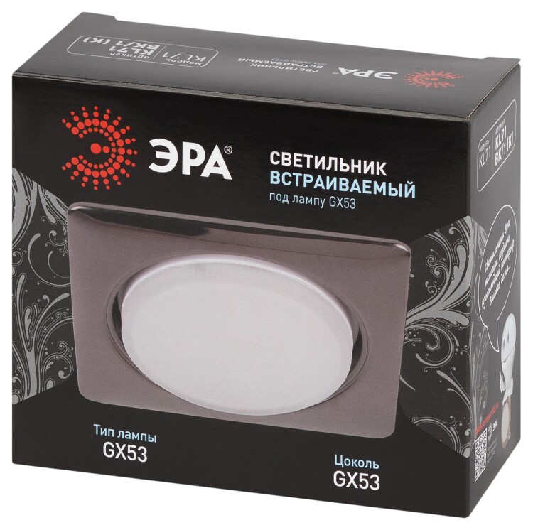 KL71 SN /1 (к) Светильник ЭРА под лампу Gx53 квадр.,220V, 13W,сатин никель (40/960)