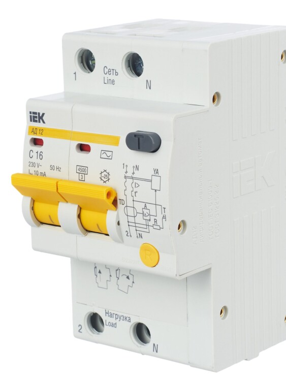 Автомат. выкл. дифф. тока 2-пол. 16А 10мА тип AС 4,5кА хар-ка C серия АД12