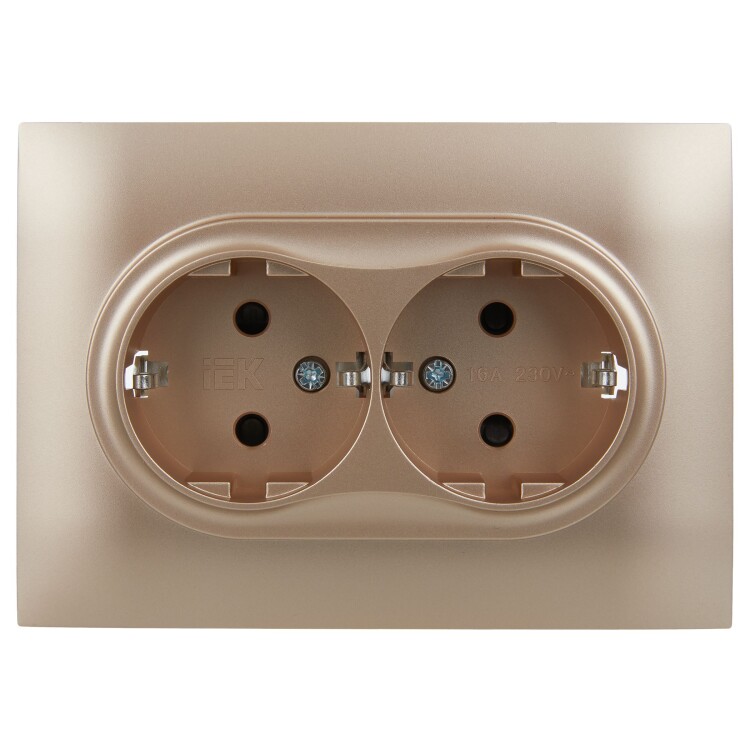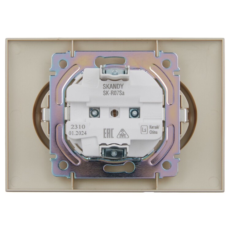Розетка 2-местная с заземлением с защитными шторками 16А в сборе SK-R07Sa песочный SKANDY