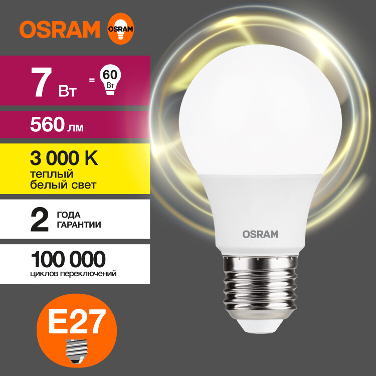 LVCLA60 7SW/830 230V E27 10X1 RU OSRAM