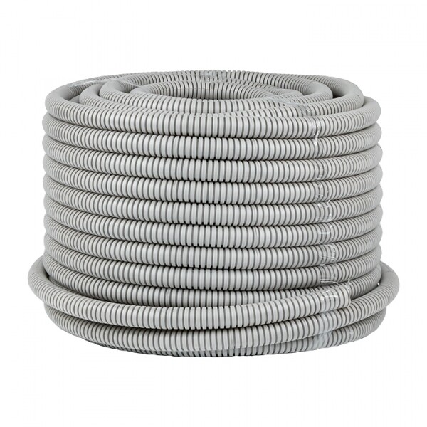 Труба ПВХ гибкая гофрированная д.20 мм, лёгкая, с протяжкой, цвет серый, (Бухта 50м)