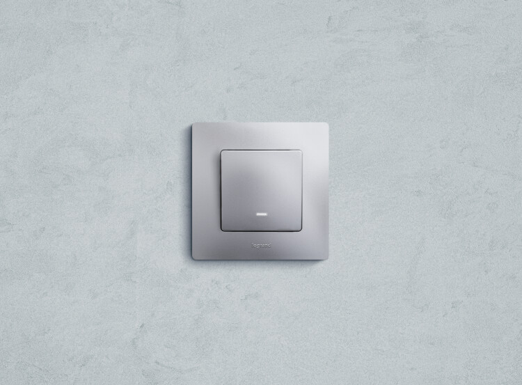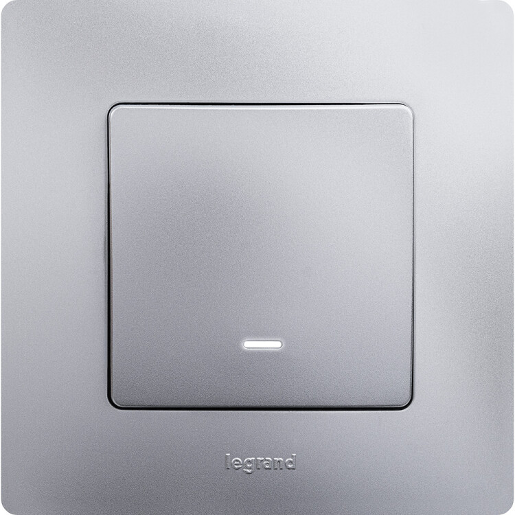 Выключатель 1 клавишный с подсветкой алюминий Etika