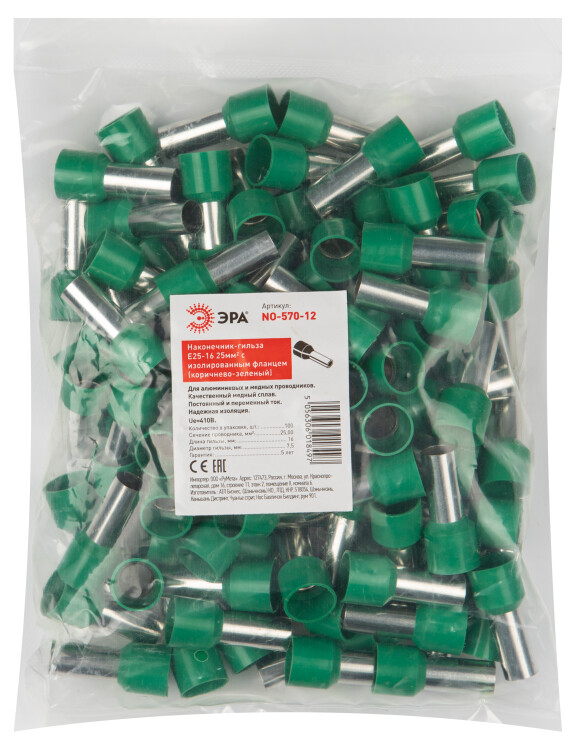 Наконечник-гильза НШВИ ЭРА NO-570-12 Е25-16 25мм2 с изолированным фланцем коричнево-зеленый упаковка 100 шт