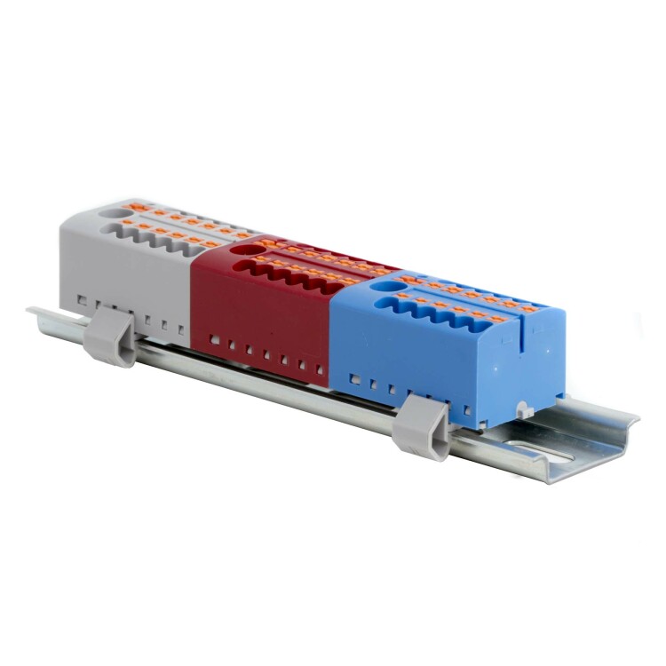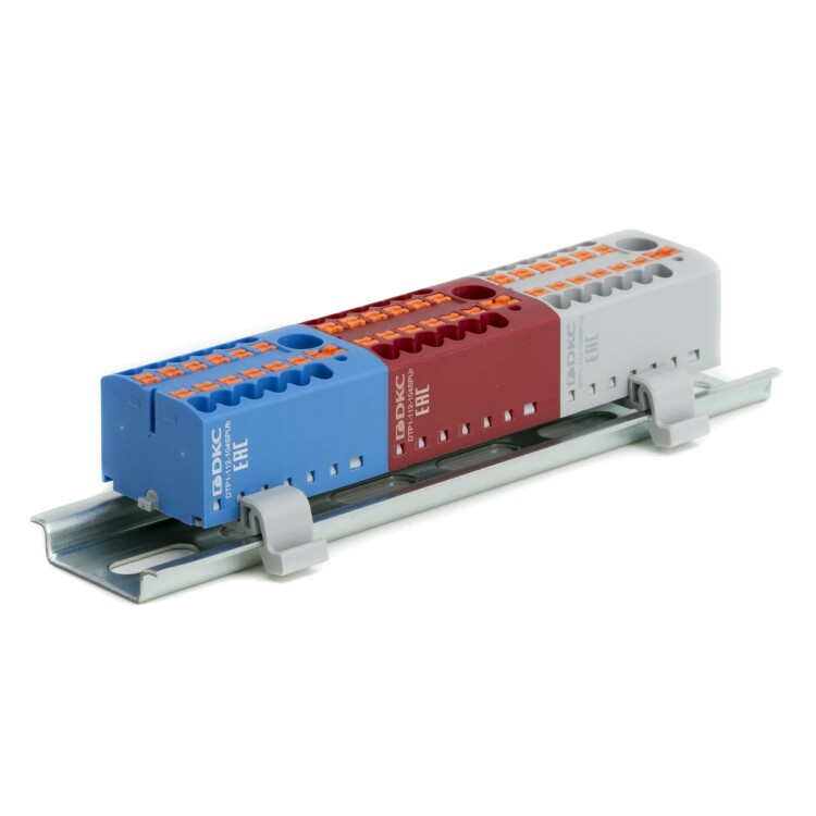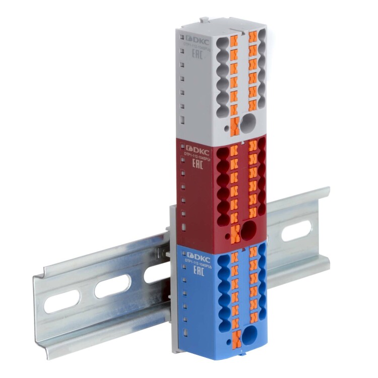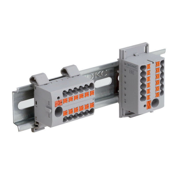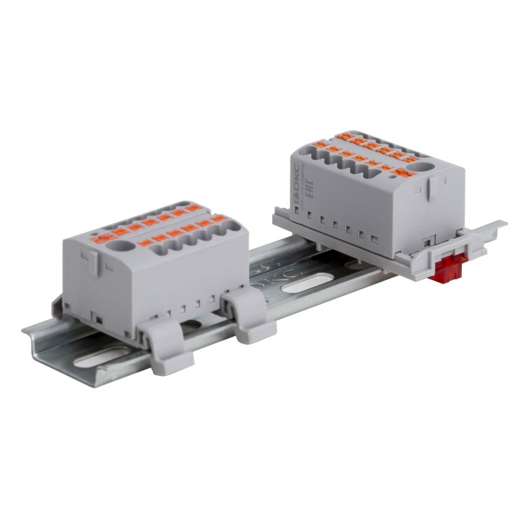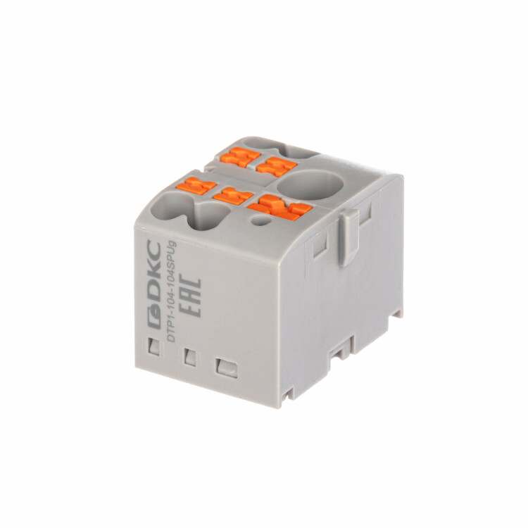 Блок распределительный, зажим push-in, 1 ввод 6 кв.мм, 4 точки подключения 2,5 кв.мм, серый