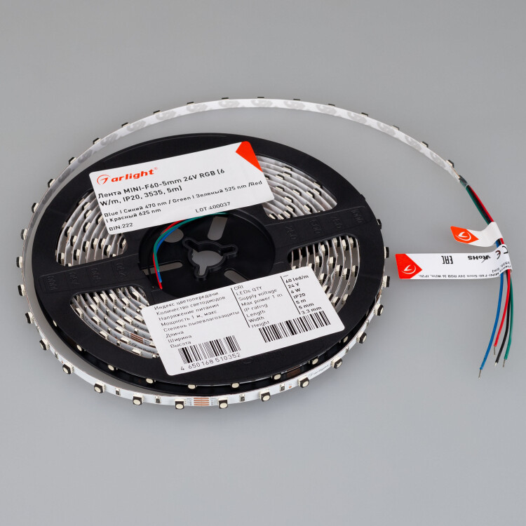 Лента MINI-60-24V 6Вт RGB 5mm (3535, 5m, LUX) IP33