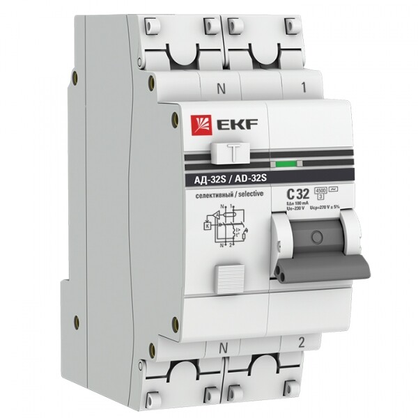 Автомат. выкл. дифф. тока 1-пол.+N 32А 100мА тип AC 4,5кА хар-ка C серия АД-32 (селективный) 1P+N 32А/100мА EKF PROxima