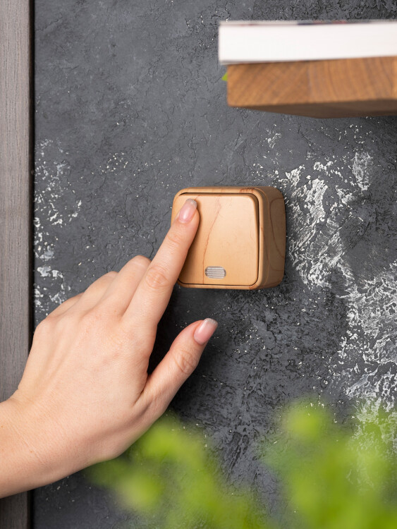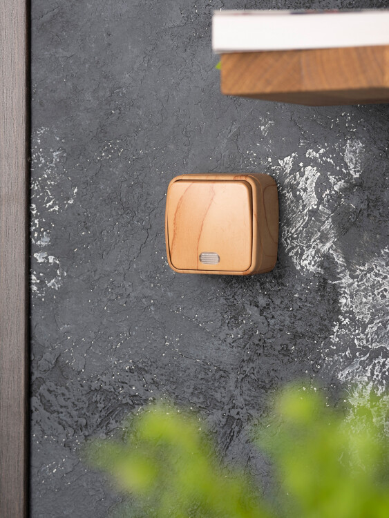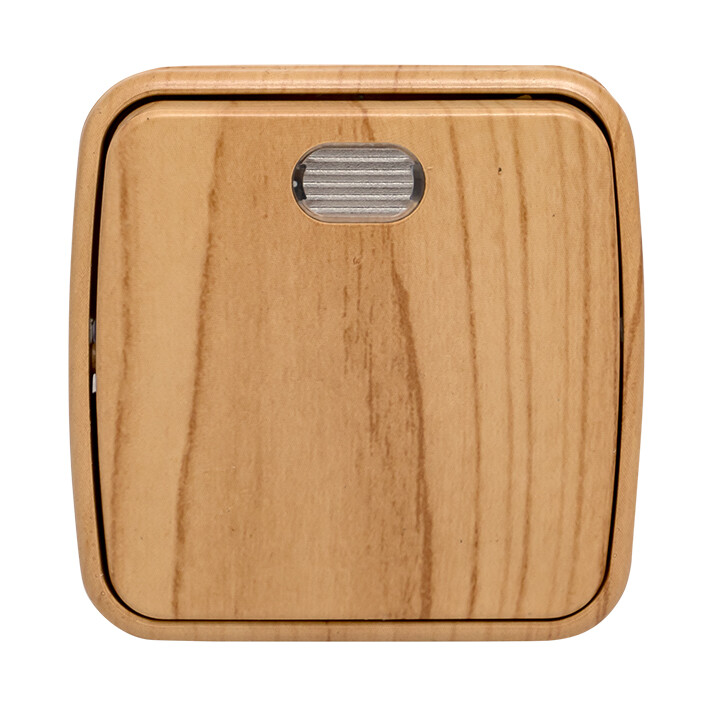 Выключатель 1-клавишный ОП Минск 10А с индикатором светлое дерево EKF