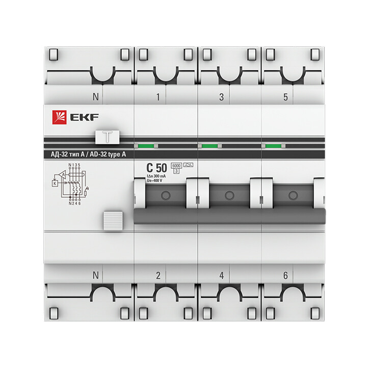 Дифференциальный автомат АД-32 3P+N 50А/300мА (хар. C, A, электронный, защита 270В) 6кА EKF PROxima