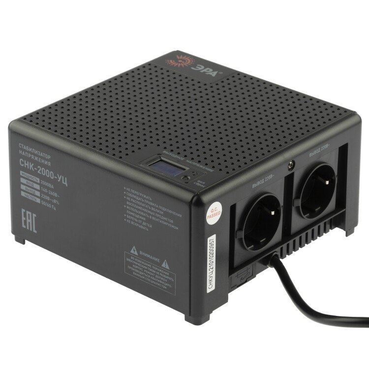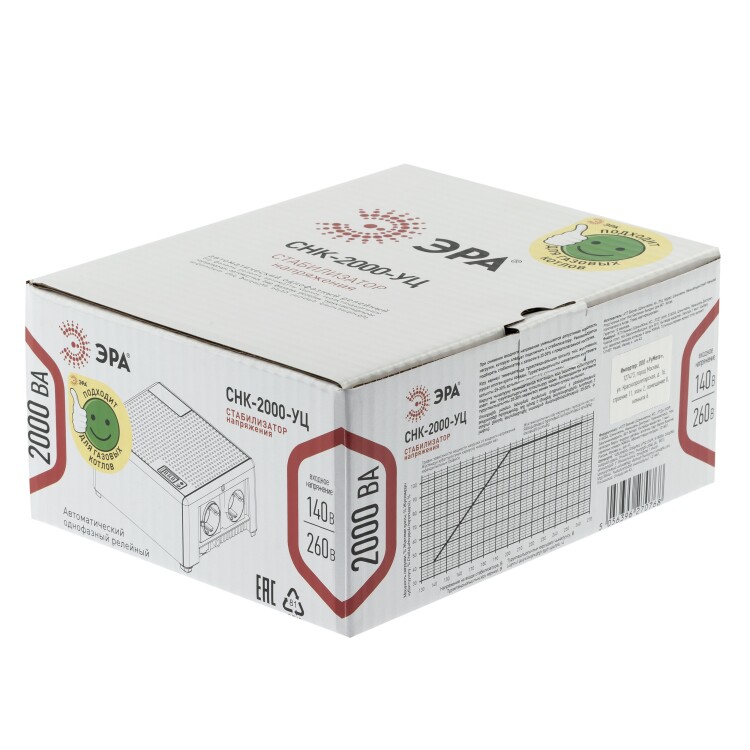 Стабилизатор напряжения ЭРА CНК-2000-УЦ компактный универсальный, 140-260В/220В, 2000ВА