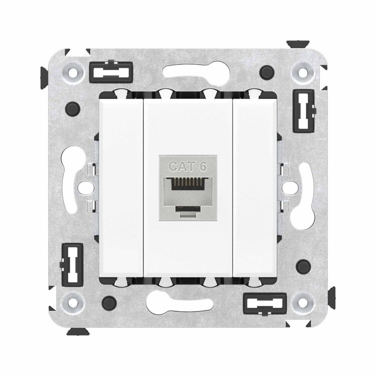 Компьютерная розетка RJ-45 без шторки в стену, кат.6 одинарная экранированная, "Avanti", "Белое облако"