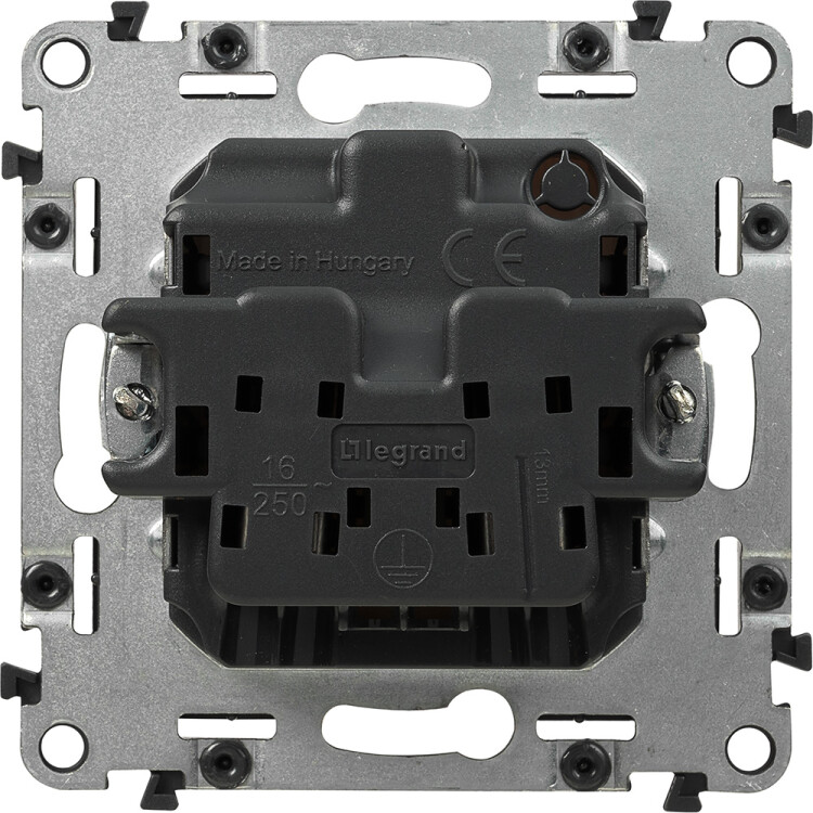 Розетка 2P 16A безвинт.зажим алюминий Life