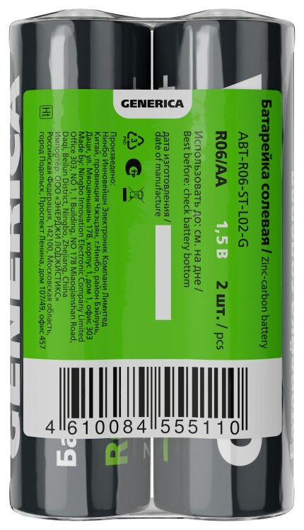 Батарейка солевая R06/AA (2шт/пленка) GENERICA