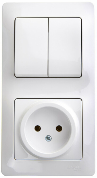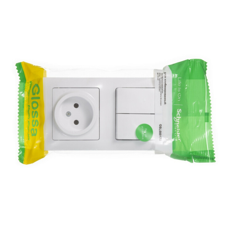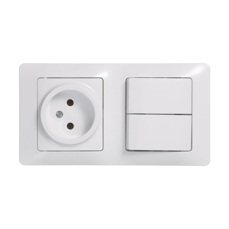 GLOSSA БЛОК: РОЗЕТКА + 2-клавишный ВЫКЛЮЧАТЕЛЬ БЕЛЫЙ