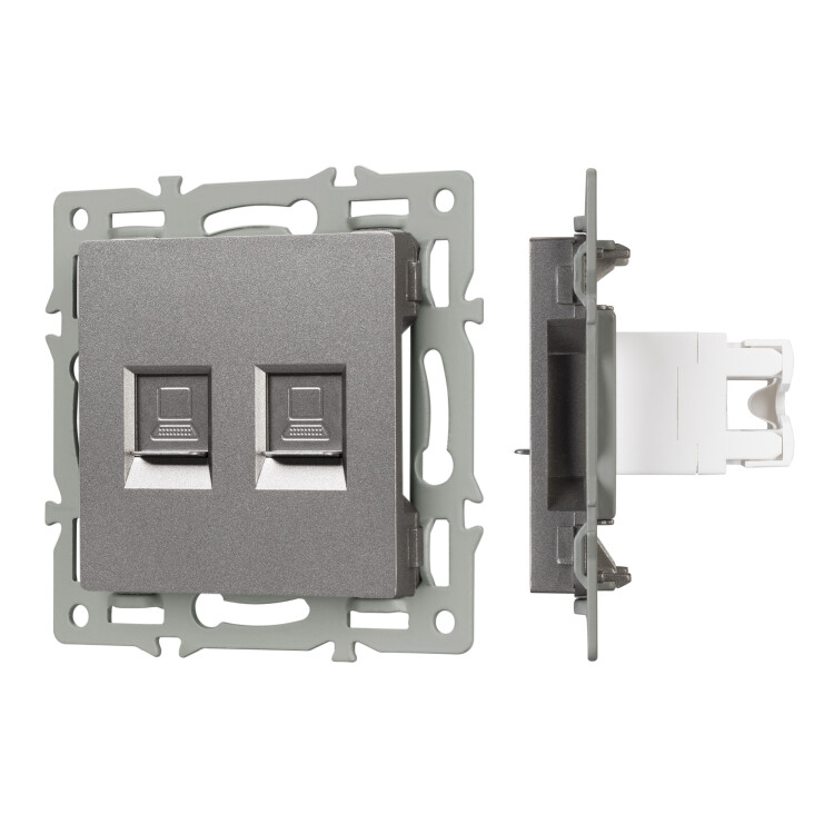 Розетка компьютерная 2хRJ45 кат.6 серый SCT-MPC2-PL-GR VERSA-GLARE-PRESTO Arlight