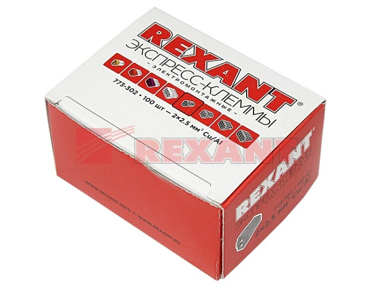Экспресс-клемма с пастой СМК 773-302, 2-проводная до 2,5 мм², серая (100 шт/уп) REXANT