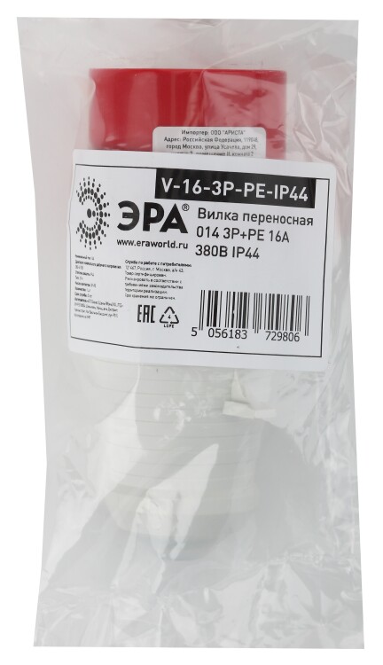 Вилка ЭРА V-16-3P-PE-IP44 переносная 014 3Р+РЕ 16А 380В IP44