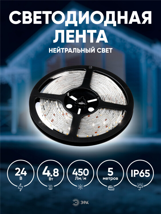 ЭРА Лента светодиодная LS2835-4,8-60-24-65-4000К-5m (50/800)