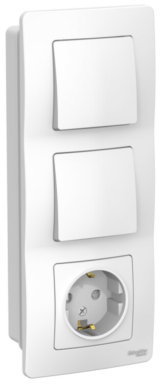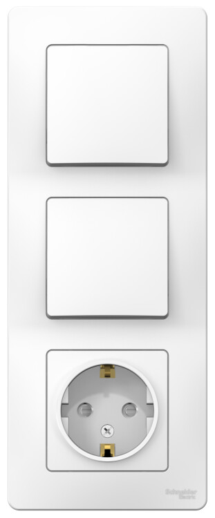 Блок выключатель 1 клавишный+выключатель 1 клавишный+розетка 2Р+Е со шторками белый BLANCA