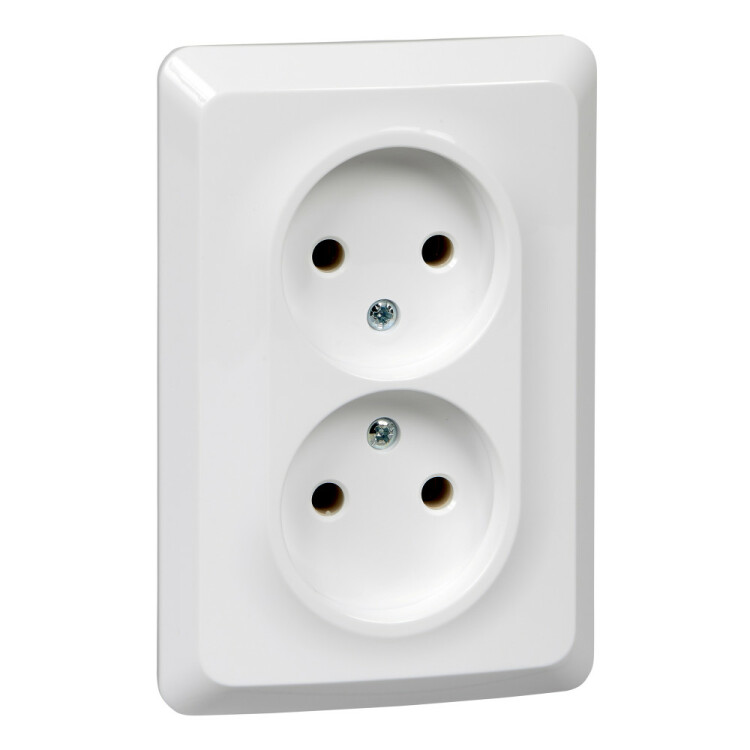 ЭТЮД С/У двойная РОЗЕТКА без заземления без шторок 16А 250B, БЕЛЫЙ, Россия